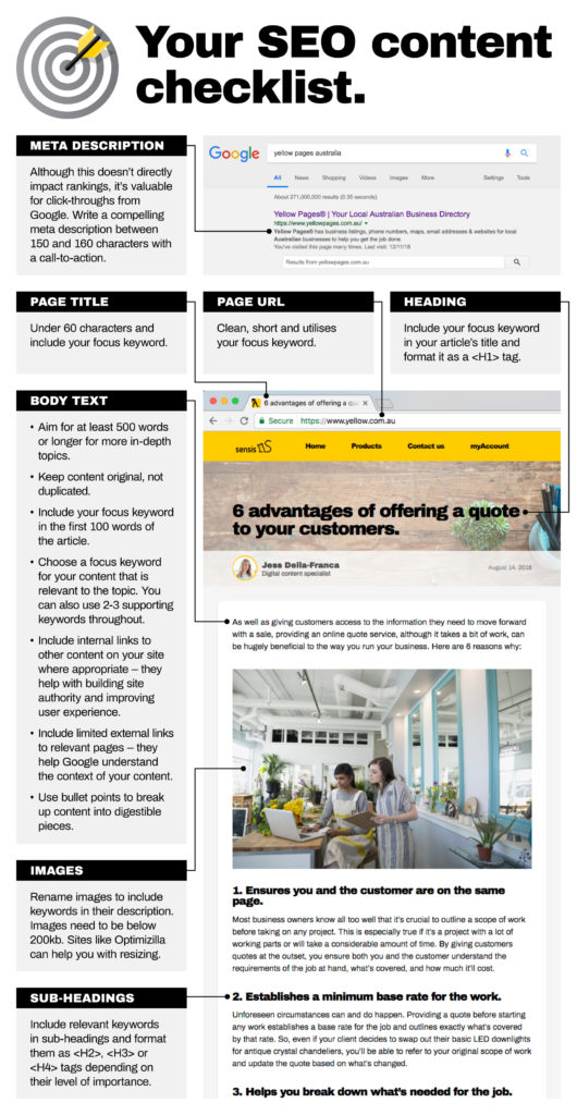 Take a look at our SEO content checklist below to help keep you on the right track. To download the checklist, click on the image.