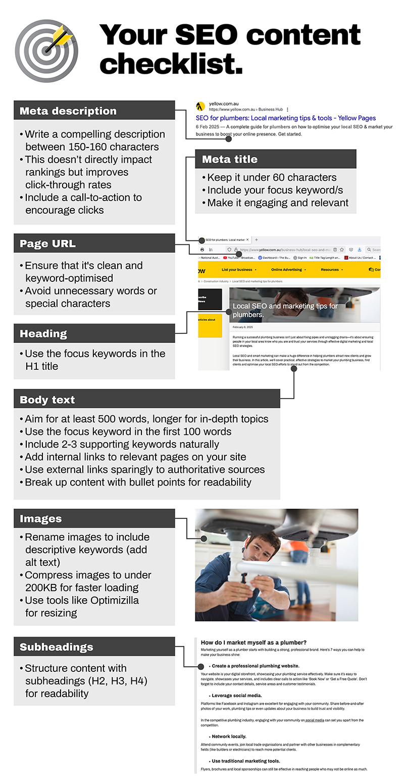 Take a look at our SEO content checklist below to help keep you on the right track. To download the checklist, click on the image.